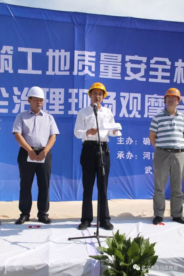 市住建局副局长宋华松代表市住建局对确山县举办此次观摩会表示祝贺,他对建筑工地质量安全标准化和扬尘治理提出要求,要抓好建筑工程质量、安全管理工作,开展好工程质量提升年活动;大气污染防治工作是中央和省市政府的重要决策,要认清形势,持续开展建筑扬尘防治工作,落实扬尘防治“六个百分百”,真抓实干,常抓不懈,使全市建筑工程质量、安全生产和扬尘防治工作得到大幅度提升。