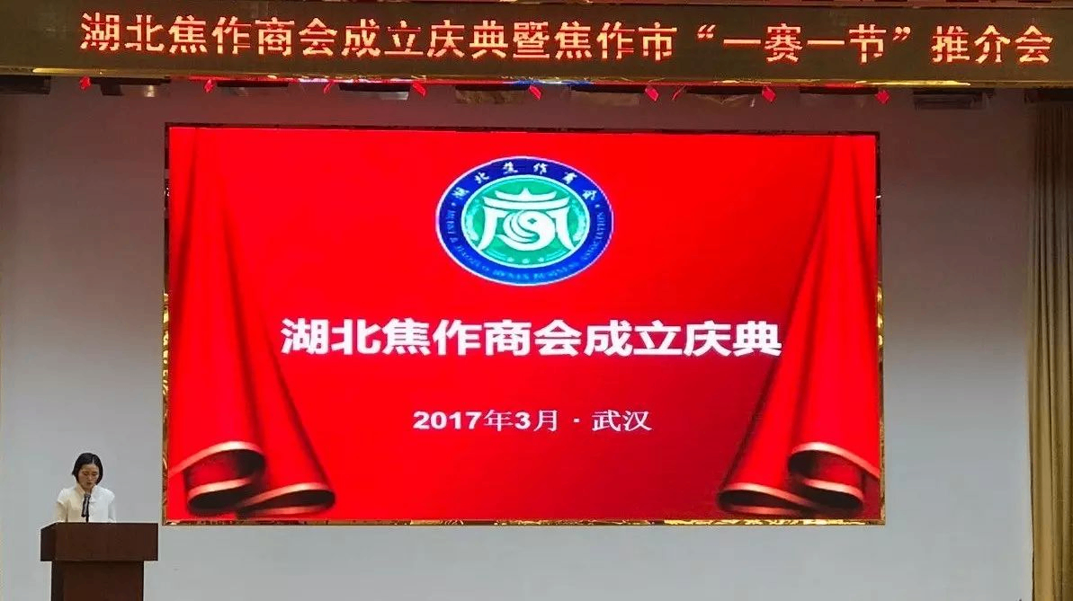 2017年3月26日上午,湖北焦作商会在武汉市中南花园酒店举行成立大典。焦作市委常委﹑统战部长杨娅辉,副市长牛炎平出席成立大会。武汉驻马店商会会长孙前进、副会长霍礼富等代表参会。