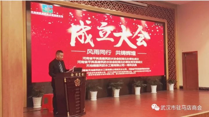 武汉驻马店商会会长孙前进在致辞中对平舆县防水协会的成立表示热烈的祝贺,同时对湖北办事处日后工作会更加支持,坚持“服务政府,服务行业,服务会员”的宗旨,根据协会的定位和方向积极有效的开展工作,充分发挥在行业中的凝聚力,全面树立平舆防水人在湖北社会中良好的形象。武汉驻马店商会副会长李柏松被聘为武汉办事处主任,希望在今后的工作当中为我们武汉驻马店商会取得更多殊荣。