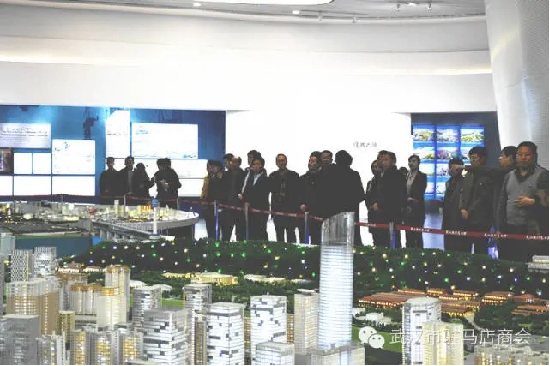经孙前进会长与武汉市政府接待办接洽,上午10点,市政府工作人员与孙前进会长一道陪同考察团一行来到享有盛名的楚河汉街,在东沙湖连通工程展示厅,工作人员就东沙湖历史愿貌、东沙湖工程建设及连通工程对提升武汉市的建设发展所起到的影响做了详细讲解。
